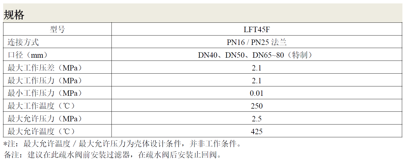 適用于超大型換熱設備疏水,LFT45F最大排量可達23t/h