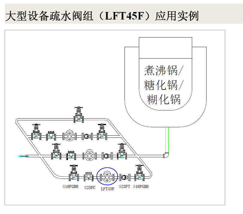 適用于大型工藝或加熱設備(糊化鍋,煮沸鍋,大型蒸發器,單效真空濃縮設備,大型熱風烘干機,大型蒸煮鍋,蒸餾塔,精餾塔,再沸器等)的冷凝水排放。