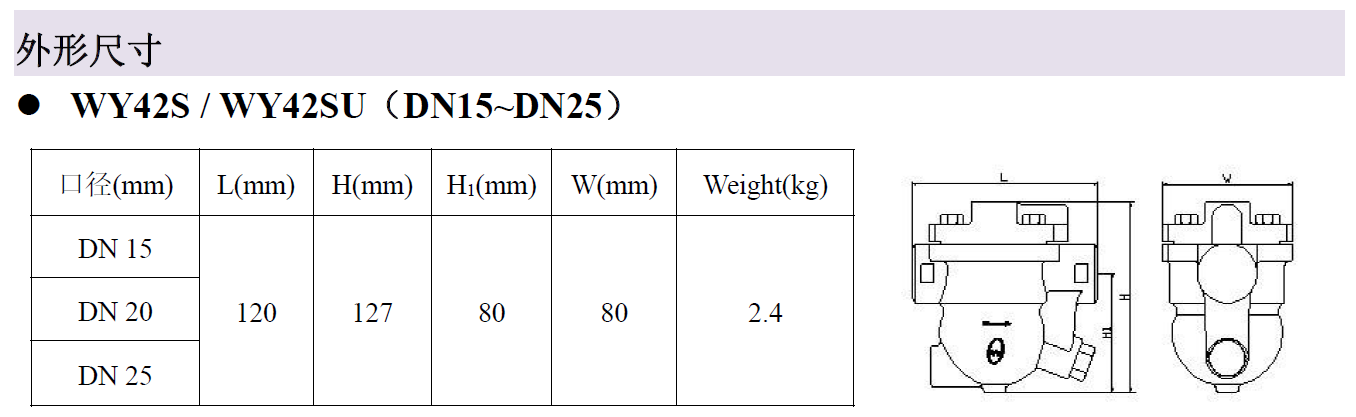 適用于小型換熱設備疏水,此型號最大排量約420kg/h。