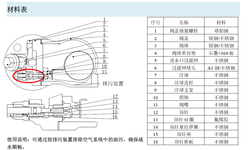 2、精確的浮力結構設計,確保排放液位永遠略高于閥嘴,達到水密封的效果,避免空氣泄漏,真正實現(xiàn)零泄漏且節(jié)能。