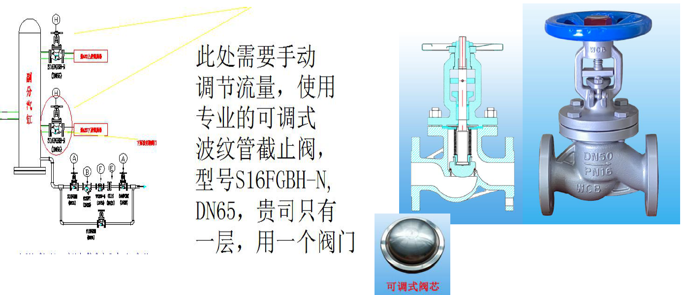 A、若采用手動調質,則建議選用way’s可調式波紋管截止閥S16FGBH-N或S25FGB-N,可手動等百分比調節流量,這是專門給這種工況設計的型號。