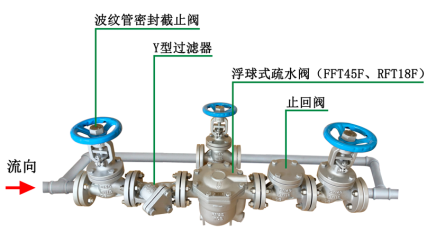 4對于利用換熱器間接加熱的淋水式殺菌機,則建議選用way’s浮球式疏水閥,一般選用FFT45FDN40的規格即可,這款疏水閥可以連續及時排放冷凝水,確保沒有積水,不會產生水錘震動等問題,確保高效節能。