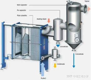 兩者的區(qū)別,主要集中在加熱器的形式上,上圖等的形式,一般為管式蒸發(fā)器,而下圖的這種為板式。