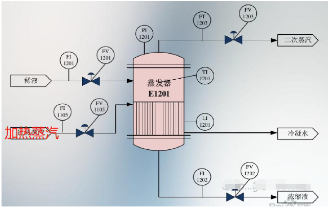 A、稀液的氣動(dòng)控制閥(FV1201)---蒸發(fā)器液位和稀液流量串級(jí)控制;