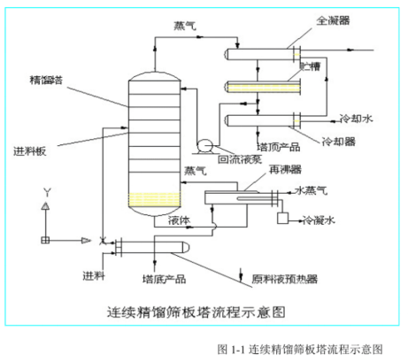 二、精餾單元主要設備組成及工藝流程
