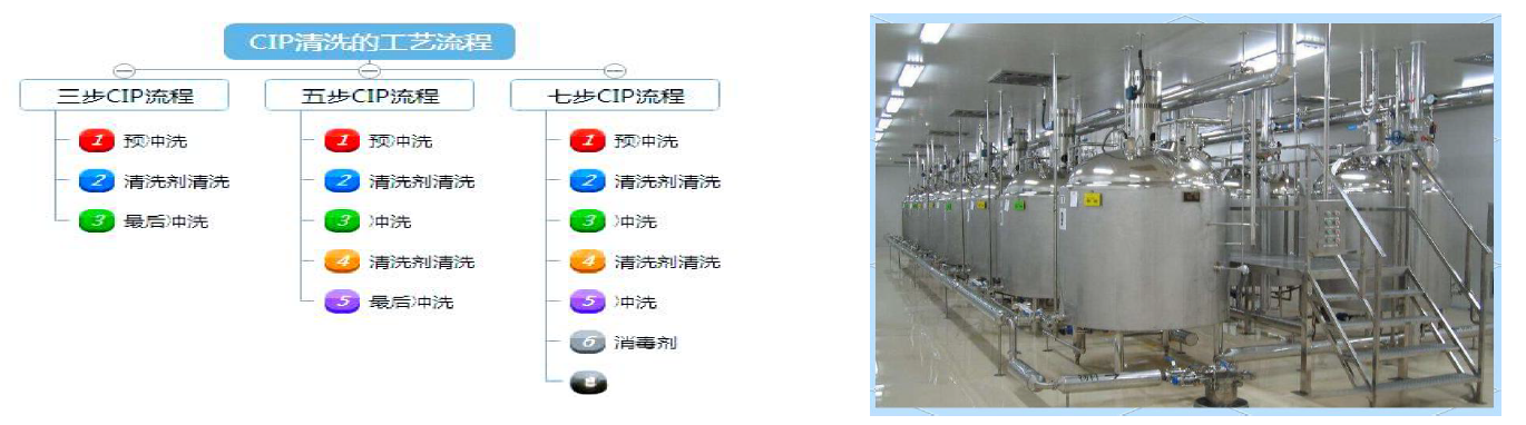 1、定義:CIP,即Cleaning In Place,意為原位清洗,也稱在線清洗。根據乳業辭典的定義,它是一種無需拆卸或移動設備,即可通過高溫、高濃度洗滌液進行強力清洗的方法,旨在徹底洗凈與食品的接觸面,它利用物理和化學原理,配合專用的清洗劑,能有效去除設備及管道內的沉積物,確保生產過程的衛生和質量。這種清洗方式特別適用于與流體物料如乳品、果汁、果醬、飲料、酒等直接接觸的槽、罐、管道等設備的清洗;比如夾層鍋、殺菌釜、蒸柜、蒸煮線和解凍線等,都需要CIP清洗。