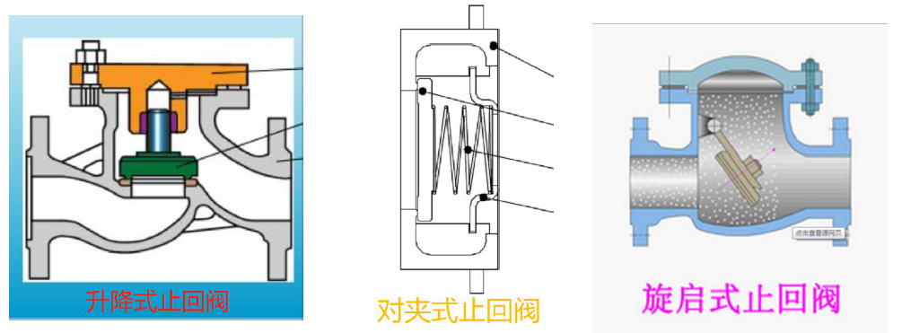 2)旋啟式:不能裝在流向向下的豎直管道上;適用于大口徑。
