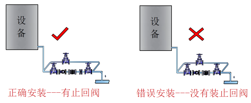 1)如果冷凝水有可能倒流,就必須要裝止回閥;反之,如果冷凝水是獨立的對大氣排放,且排水管水平或往下,則無需安裝止回閥。