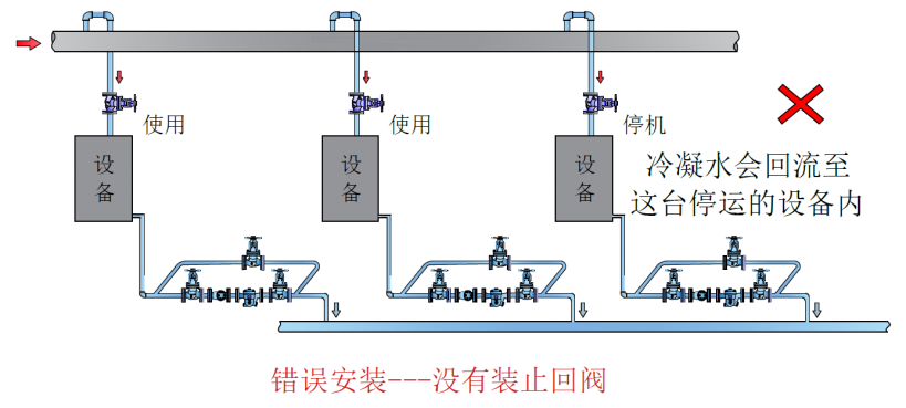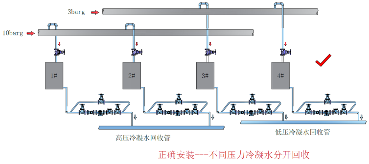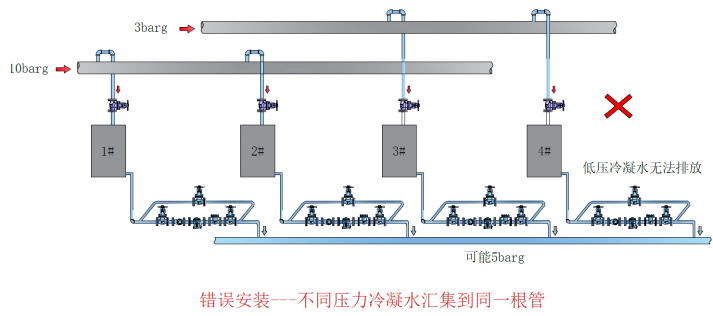 2)如果低壓的冷凝水想要匯集到高壓冷凝水回收管,是實現不了的,加裝止回閥也沒用。