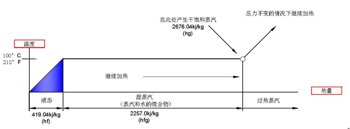 這指的是在沸騰溫度下水變成蒸汽所需要吸收的熱量,期間,水和蒸汽的混合物溫度不上升,所有的能量都用來把水由液態變為氣態,即飽和蒸汽。