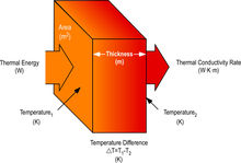 qx(W/m^2)是與傳輸方向相垂直的單位面積上的熱流速率。它與在該方向上的溫度梯度成正比,其中的比例系數 k 就是介質的熱導率,是物質最基本的物理性質之一。