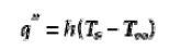 其中q''是熱流密度(W/m^2),Ts是固體壁面溫度,