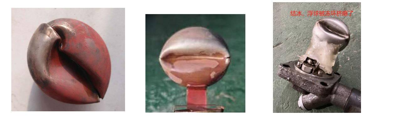 2.3冬天寒冷天氣,停機時沒有做好防凍措施,冰凍,導致閥體變形,浮球被擠癟等問題。