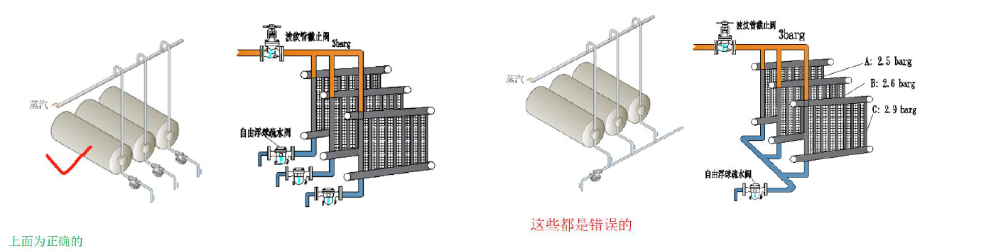 B、高壓和低壓的冷凝水必須分開不同管道回收,這一點我們經常強調,這里不多解釋了。
