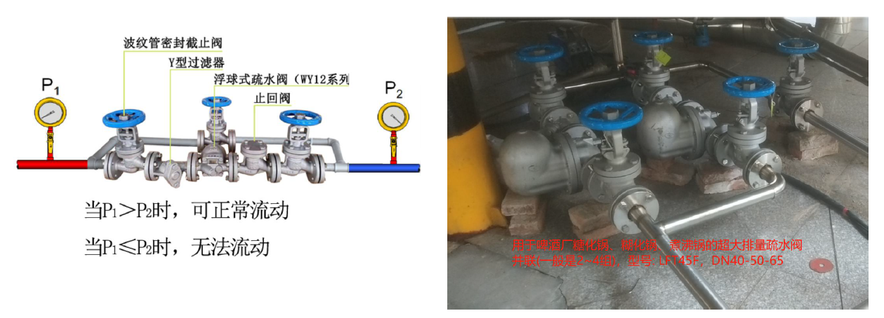 9、蒸汽疏水閥不能串聯安裝,但是可以并聯安裝(當流量不夠時,允許并聯)。