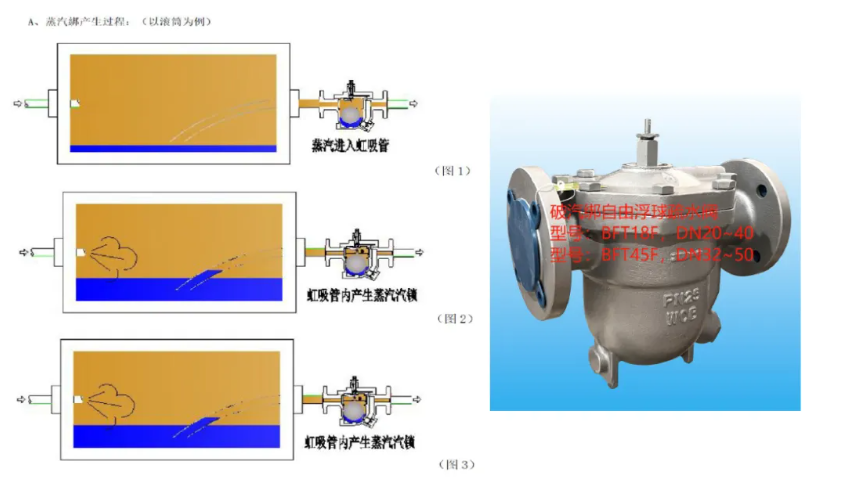使用虹吸管的設備(如汽鍋、滾筒干燥機等),還有疏水閥的安裝位置距離用汽設備較遠時,冷凝水管道有提升時,都會出現這種現象。
