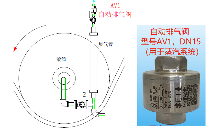 當蒸汽關停后,由于熱蒸汽發生冷凝,系統內壓力下降,形成真空,空氣就會慢慢地被吸收到系統中。當系統再次啟動、蒸汽再次進入系統時,空氣會被蒸汽推至系統的遠端,如果此時空氣未被排空,就會發生壓縮;最初被壓縮的空氣只會降低蒸汽流速,當空氣被繼續壓縮就會阻礙蒸汽流動,延長啟動時間,最終導致以蒸汽和空氣的混合物來加熱產品,大大降低產品的加熱效果,還會對設備產生腐蝕。因此,必須使用帶排空裝置的疏水閥,有時還需安裝獨立的排氣閥。