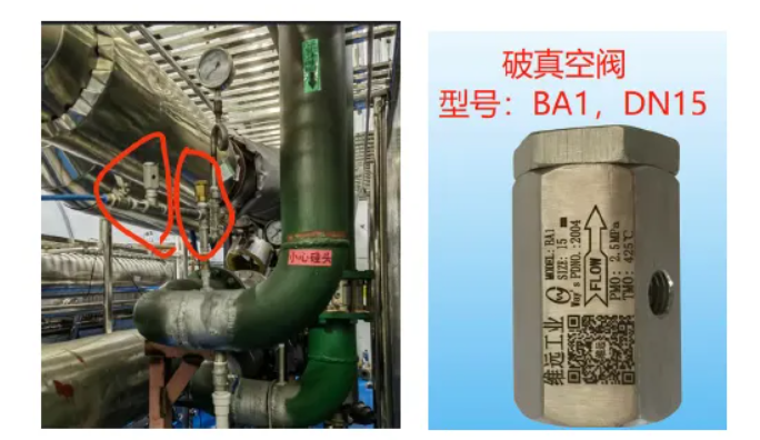 4.熱水器盤管出現真空,導致疏水閥背壓高于入口壓力,引起“失流”現象,無法排水。解決方法:在換熱器和疏水閥間安裝破真空閥。