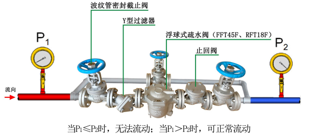 1.2 疏水閥背壓過高,背壓大于閥前壓力時,出現堵水: