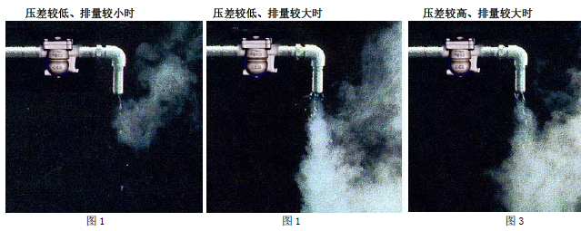 B、若疏水閥后的冷凝水伴隨著壓力呈“淋浴花灑狀”噴出,同時伴隨著一團團的“白霧狀”氣體,這就是閃蒸汽,說明疏水閥是正常排放。如下圖1-3。