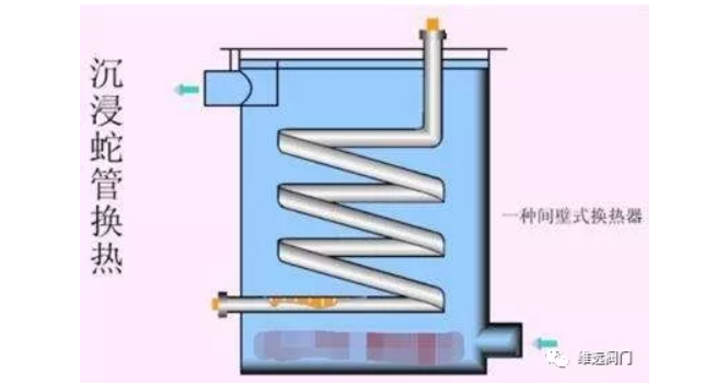 這種換熱器是將金屬管彎繞成各種與容器相適應的形狀,并沉浸在容器內的液體中。廣泛應用于食品、糧油等行業。