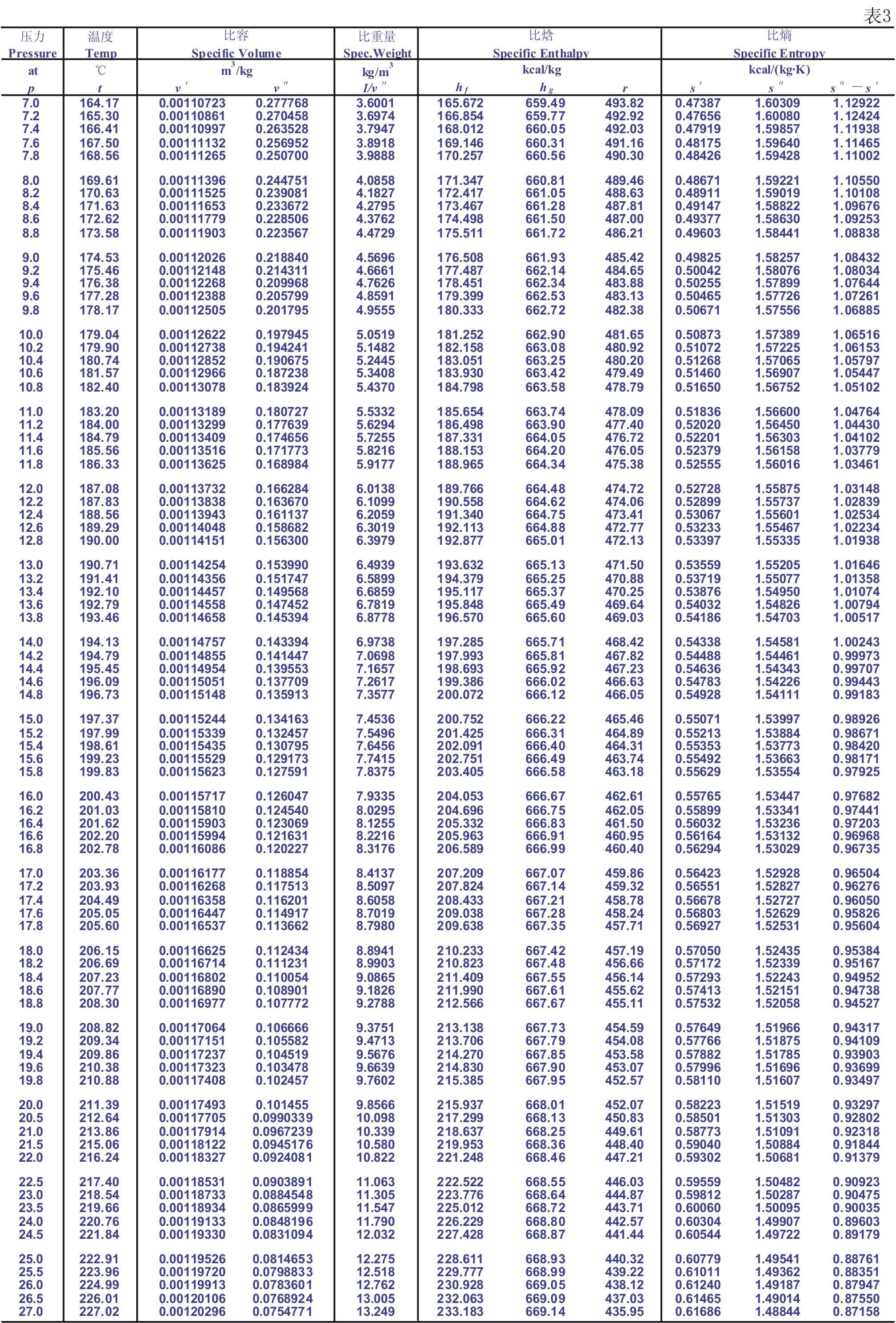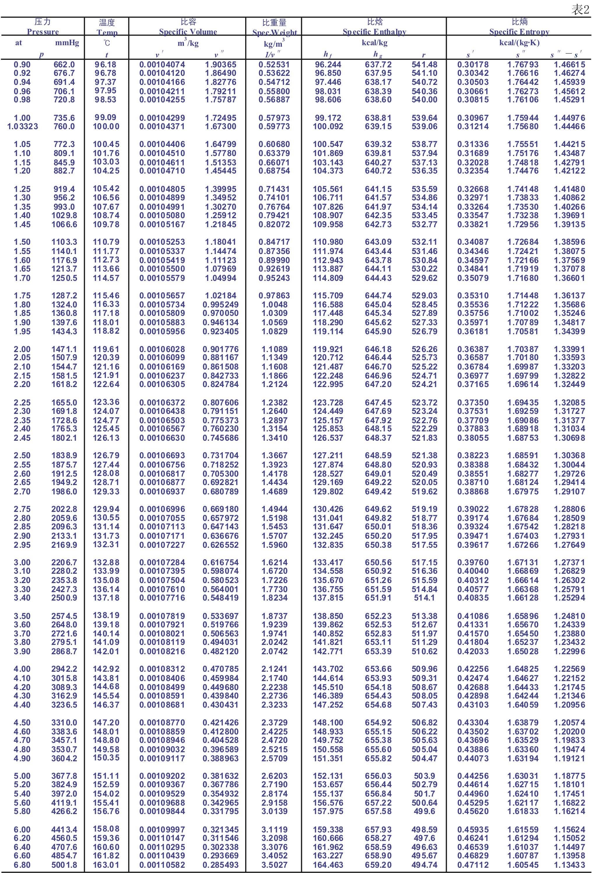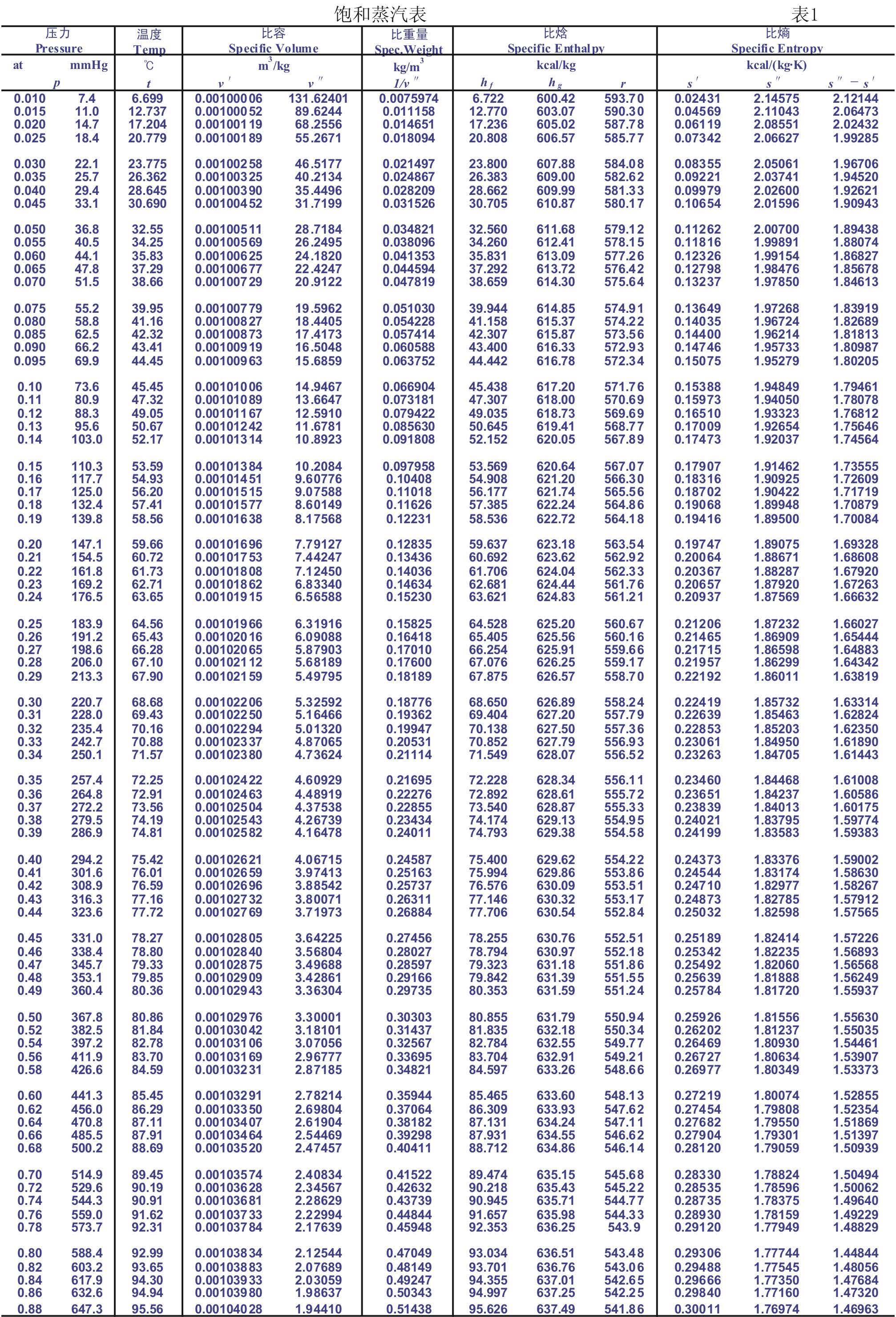 1.7 飽和蒸汽表
