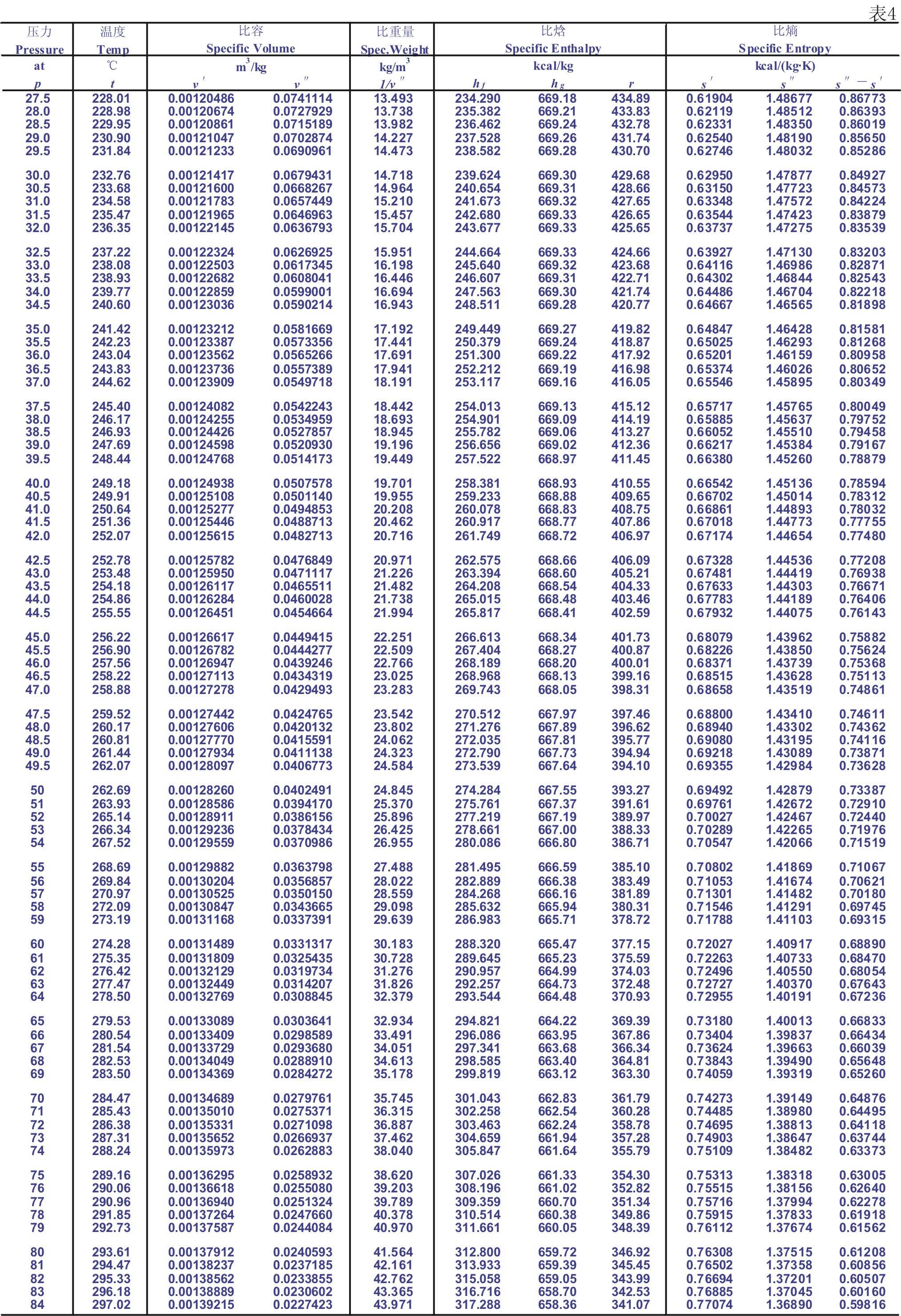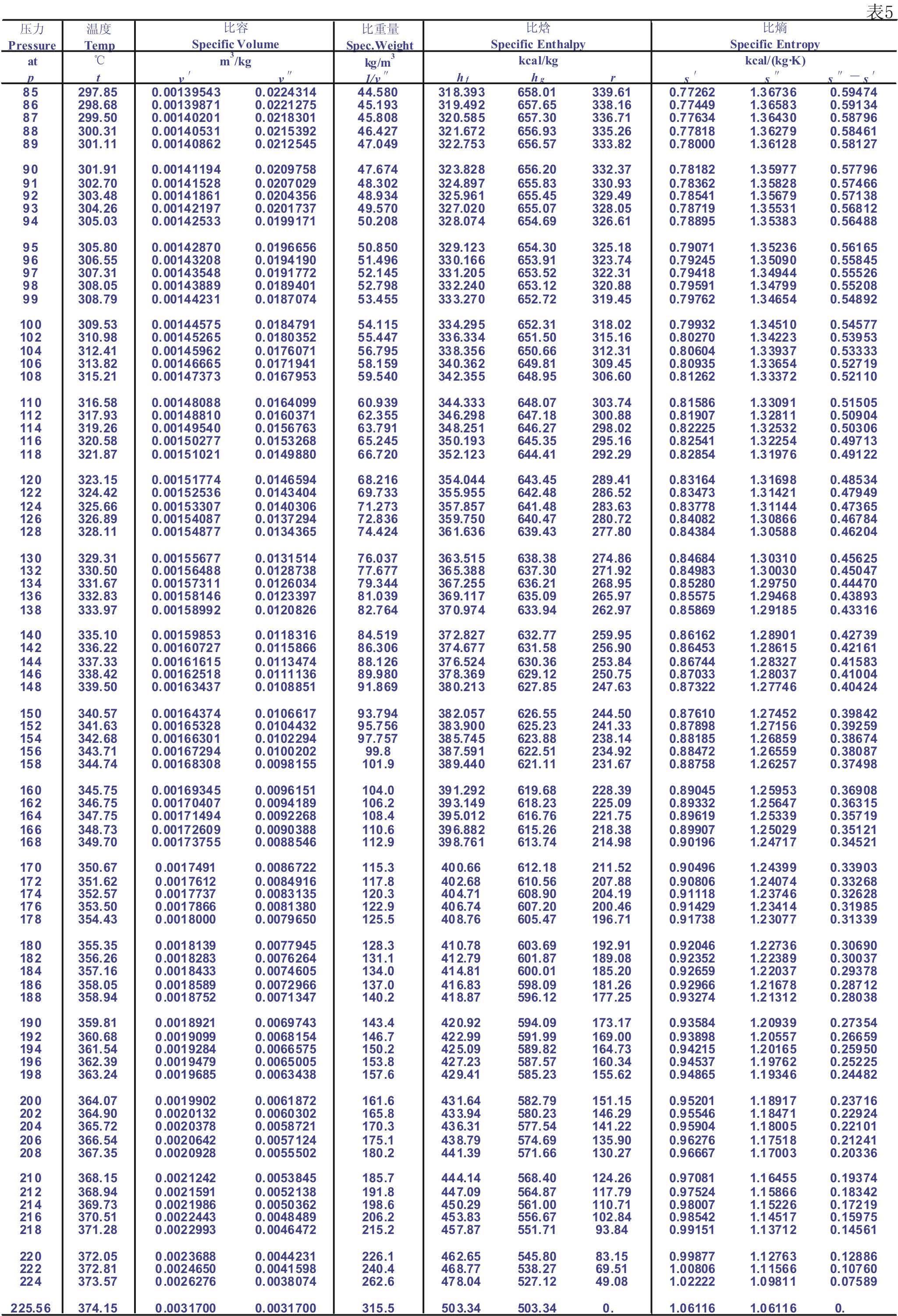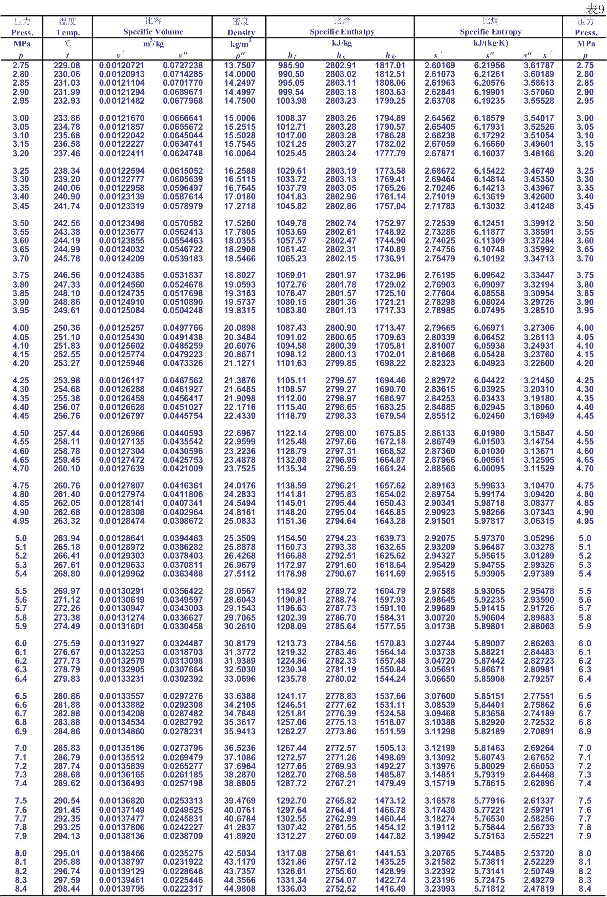 1.7 飽和蒸汽表