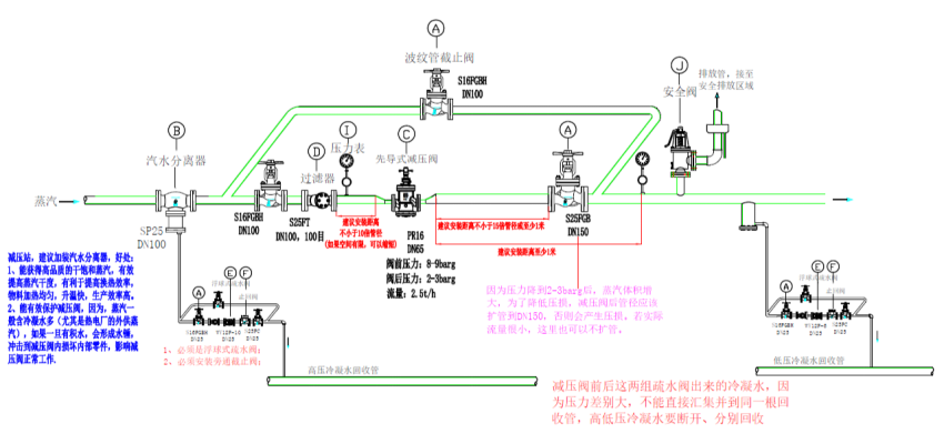 C、安裝要求較高,需要在減壓閥前安裝100目濾網(wǎng)過濾器和汽水分離器(分離器底部需要配套浮球式疏水閥)。