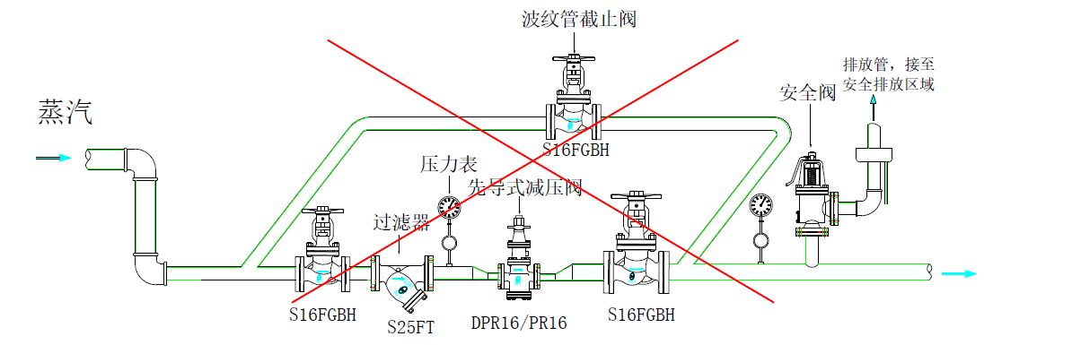 以下安裝方式:減壓閥前后沒有任何疏水閥和排水閥門,應該盡量避免,否則減壓閥會經(jīng)常因為進水而出現(xiàn)故障:
