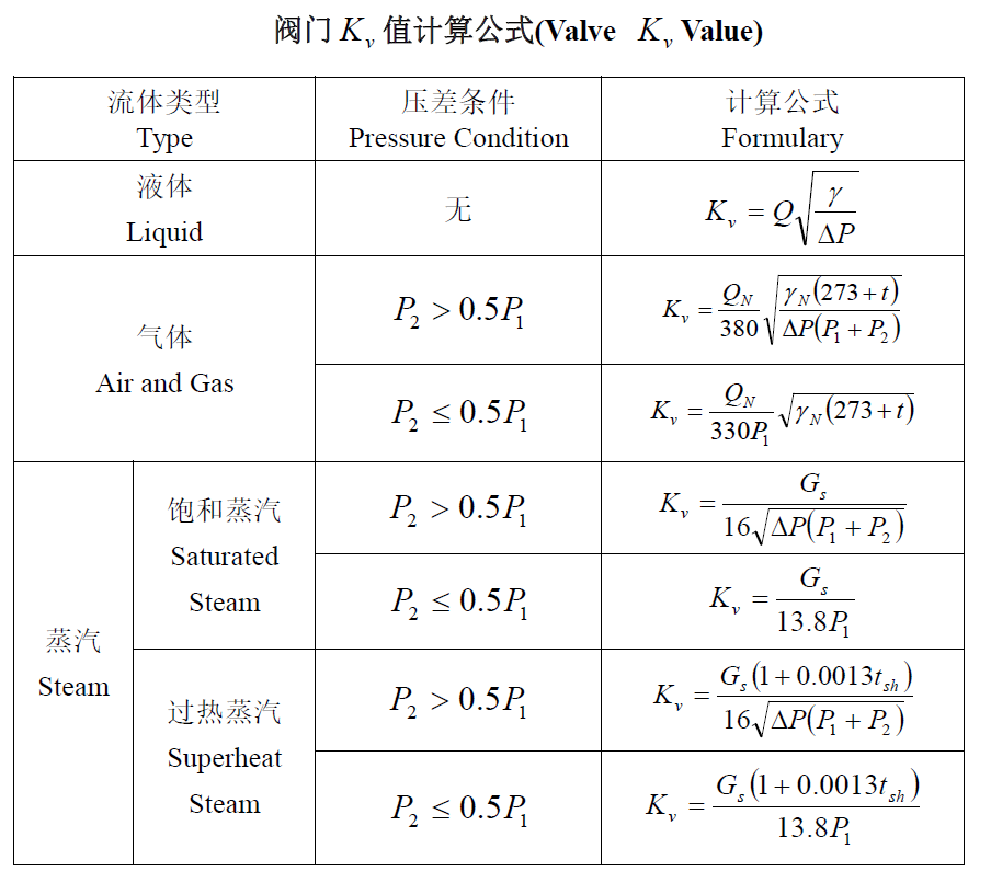 3、Kv值計算公式
