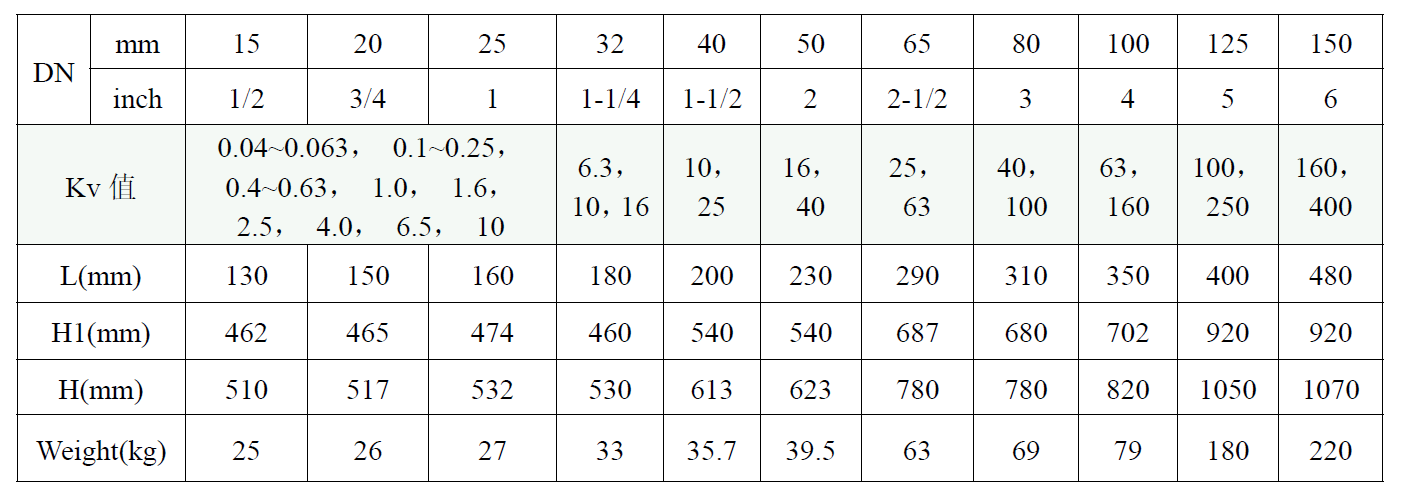 確定選出的Kv值滿足了最大開度要求后,就要看控制閥的選型表了。